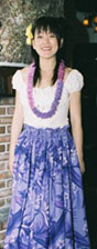 写真は、先日、フラの先生のクリスマスパーティーで踊った後のホッとした私。