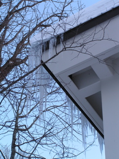 これは休暇村の建物にできてた立派な氷柱。