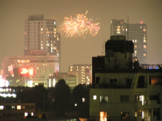 我が家から、隅田川花火大会の第一会場と第二会場の花火が