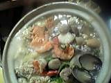 鮭・蟹・白子等、具沢山の鍋は、い〜いお出汁!